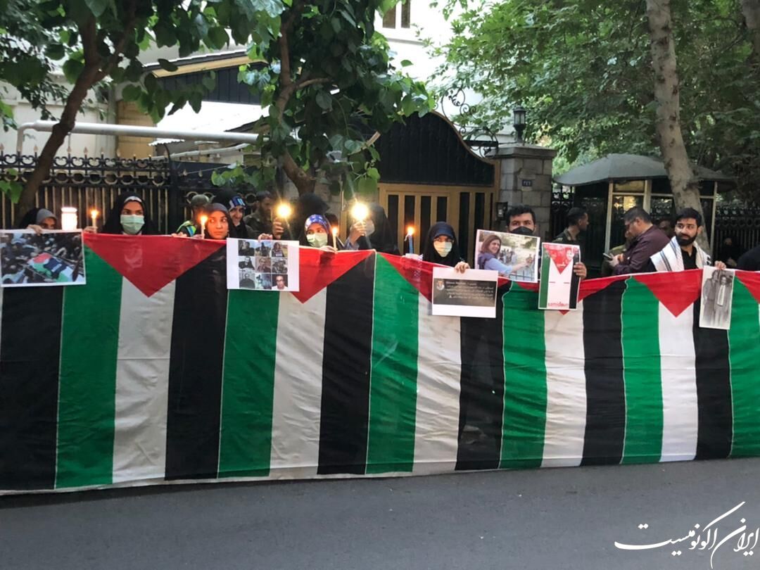 به گزارش خبرنگار سیاست خارجی ایران اکونومیست، خبرنگاران و فعالان فلسطین در تهران در پی به شهادت رسیدن «شیرین ابوعاقله» خبرنگار الجزیره توسط نظامیان صهیونیستی، مردم مظلوم فلسطین، با تجمع در مقابل سفارت فلسطین در تهران و روشن کردن شمع با مردم مظلوم فلسطین ابراز همدردی کردند.