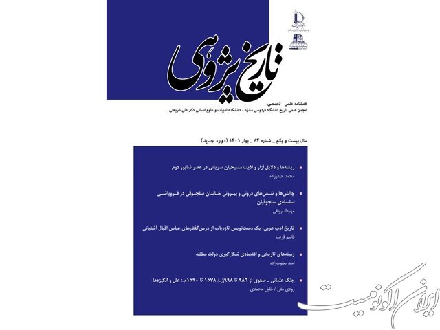 به گزارش باشگاه دانشجویان ایران اکونومیست، «ریشهها و دلایل آزار و اذیت مسیحیان سریانی در عصر شاپور دوم»، «چالشها و تنشهای درونی و بیرونی خاندان سلجوقی در فروپاشی سلسلهی سلجوقیان»، تاریخ ادب عربی؛ یک دستنویس تازهیاب از درسگفتارهای عباس اقبال آشتیانی»، «زمینههای تاریخی و اقتصادی شکلگیری دولت مطلقه» و «جنگ عثمانی – صفوی از 986 تا 998 ق/1578 تا 1590 م: علل و انگیزهها» عناوین مطالب منتشر شده در این شماره نشریه تاریخپژوهشی است.