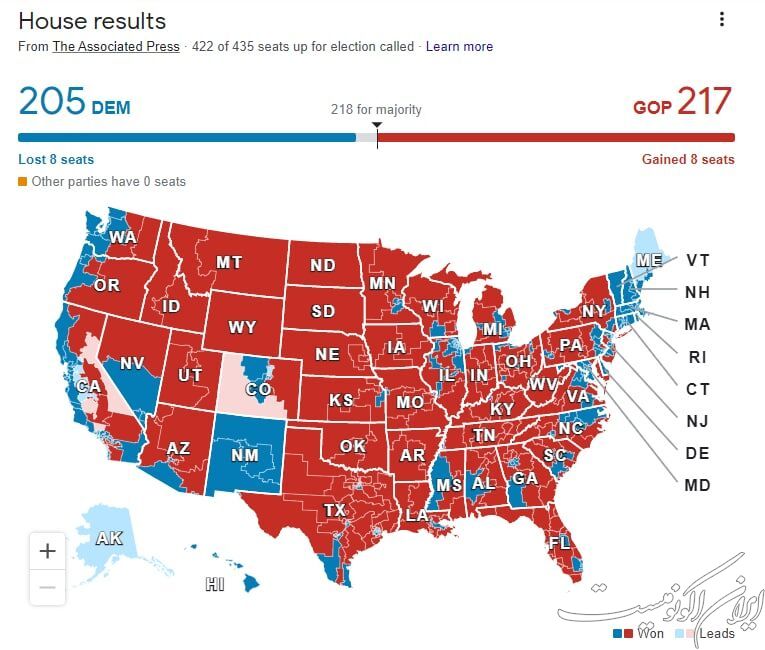 به گزارش ایران اکونومیست از تارنمای هیل، حزب جمهوریخواه با پیروزی در ایالتهای مهم کالیفرنیا و آریزونا در ساعات پایانی روز دوشنبه، به کسب ۲۱۸ کرسی برای به دست آوردن کنترل مجلس نمایندگان نزدیک شدند.