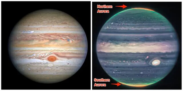 وب نماهای واضحی از شفقهای قطبی و طوفانهای مشتری ارائه کرد که هابل نتوانسته آنها را ببیند