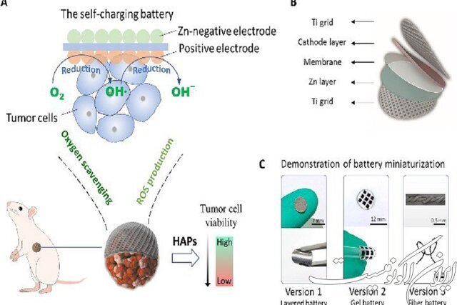 این باتری میتواند یک چرخه تخلیه و خود شارژ شدن برای مصرف مداوم اکسیژن در تومورهای موش ایجاد کند، بنابراین میزان اکسیژن و سطح pH تومور را تنظیم میکند.