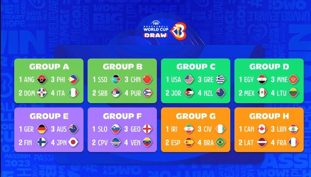 نتایج قرعه کشی جام جهانی 2023 بسکتبال به شرح زیر است: