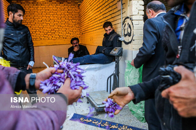 بعضی عکسها نیز مساله حضور «دلالان» در بازار فروش زعفران را به تصویر کشیده است. آنهایی که گل زعفران را از کشاورز خریداری کرده و سپس با قیمتی بیشتر به فروش میرسانند.