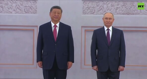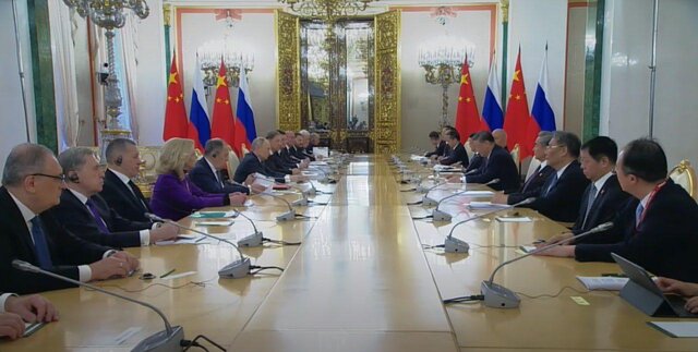 به گفته ولادیمیر پوتین، روسیه و چین در حال توسعه روابط به نفع مردم خود و نه علیه سایر کشورها هستند. رئیسجمهور روسیه گفت: «روسیه و چین با هم از حقیقت تاریخی جنگ بزرگ میهنی محافظت میکنند و با مظاهر نازیسم مقابله میکنند. روابط بین روسیه و چین به طور متقابل سودمند است. دولتهای روسیه و چین بر روی اجرای طیف وسیعی از توافقات دوجانبه کار میکنند. سفر شی جینپینگ به مسکو برای روسیه از اهمیت بالایی برخوردار است.»